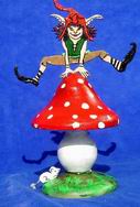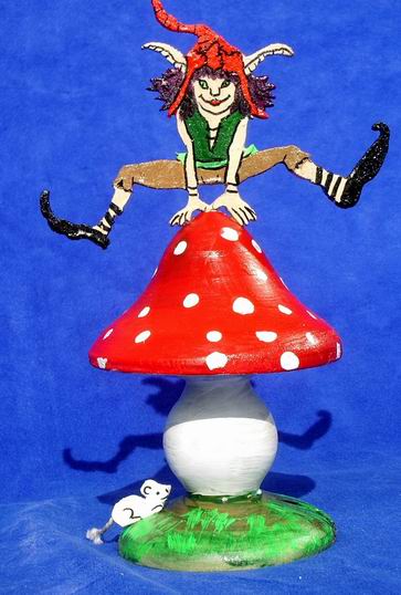 Lutin sur champignon tourné - 10cm - 15€ - Ref. OD-MF029