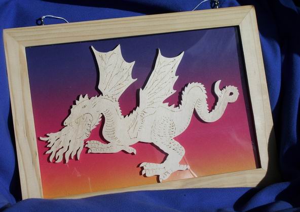 Cadre dragon - naturel - pyrogravé - 20x15cm - 15€ - Ref. OD-MF038
